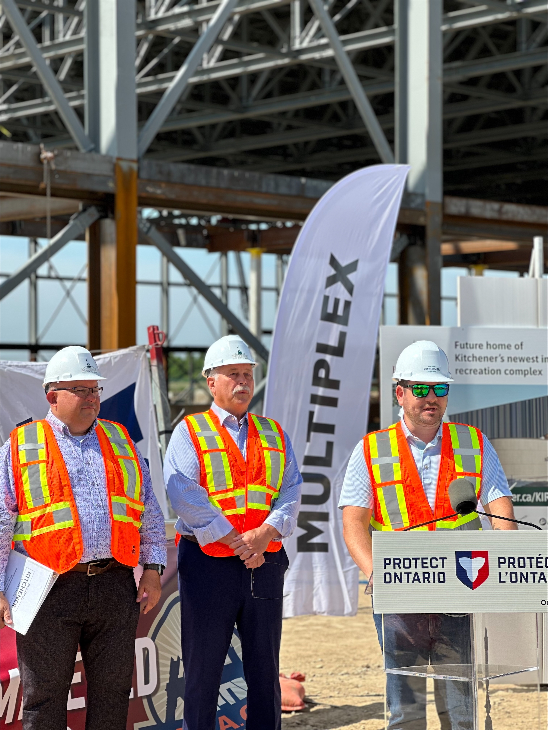 “As one of the fastest-growing communities in the province, our residents in Kitchener need high-quality sports and recreation facilities,” said Minister of Natural Resources and MPP for Kitchener-Conestoga, the Honourable Mike Harris. “We’re building Kitchener together and protecting Ontario jobs and the economy by investing in projects like the Kitchener Indoor Recreation Complex.”