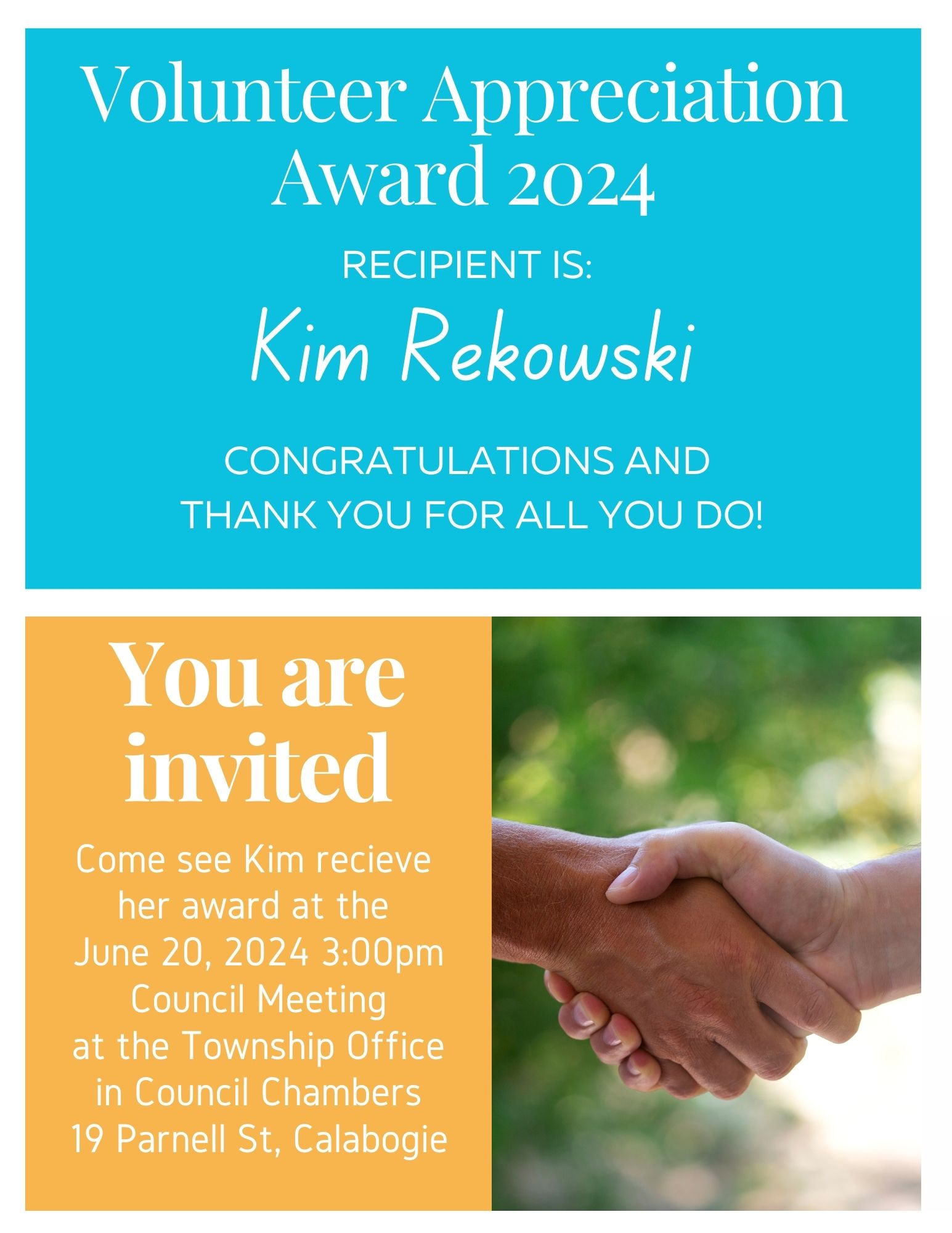 Come see our 2024 Award Recipient, Kim Rekowksi, receive her award during the June Council Meeting.