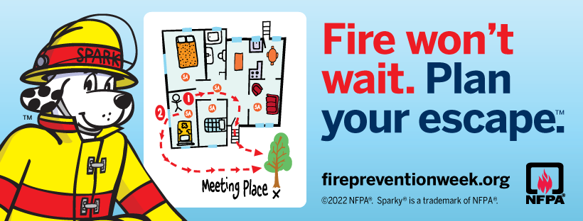 Fire Prevention Week 2022 is October 9th to 15th, and this year’s theme is “Fire won’t wait. Plan your escape.”